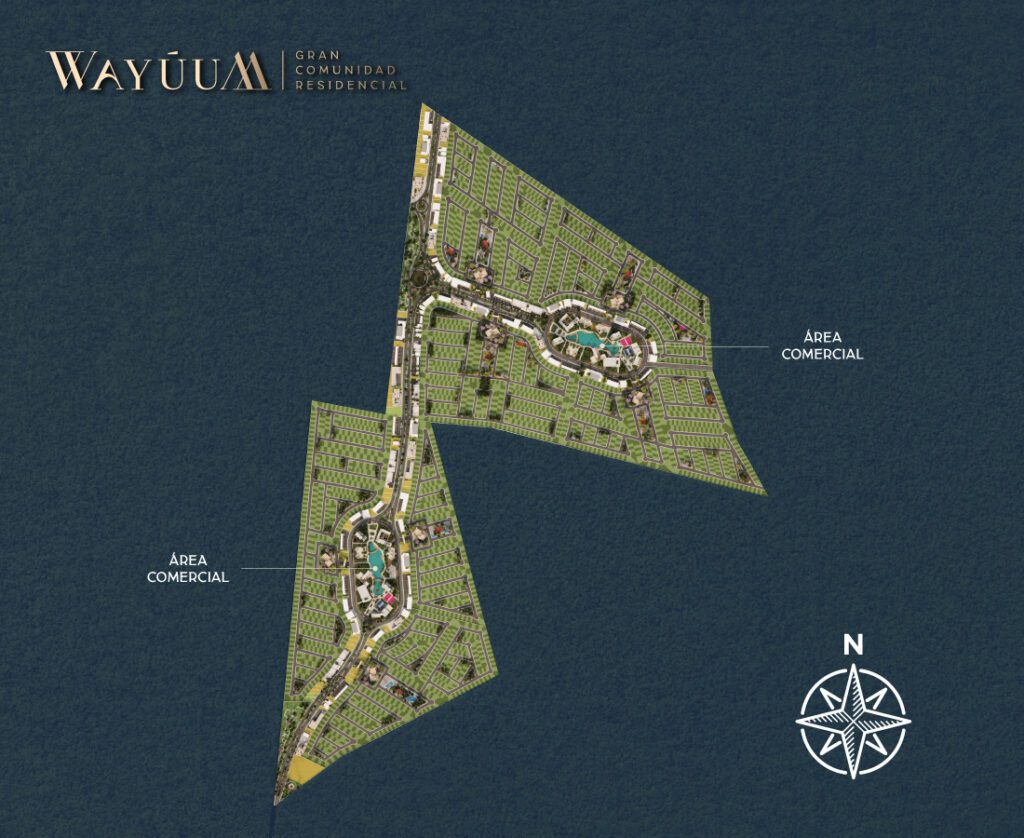 Wayúum abarca 172 hectáreas distribuidas en 7 privadas residenciales, cada una con servicios e infraestructura de primer nivel: caseta de acceso, barda perimetral, casa club, parques y jardines con diseño paisajístico.